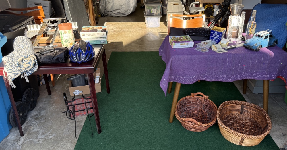 eclectic mix of oddities, useful goodies and funny stuff, not sure yet what treasures we might find as we search the garage and un-hoard the collections for the sale!